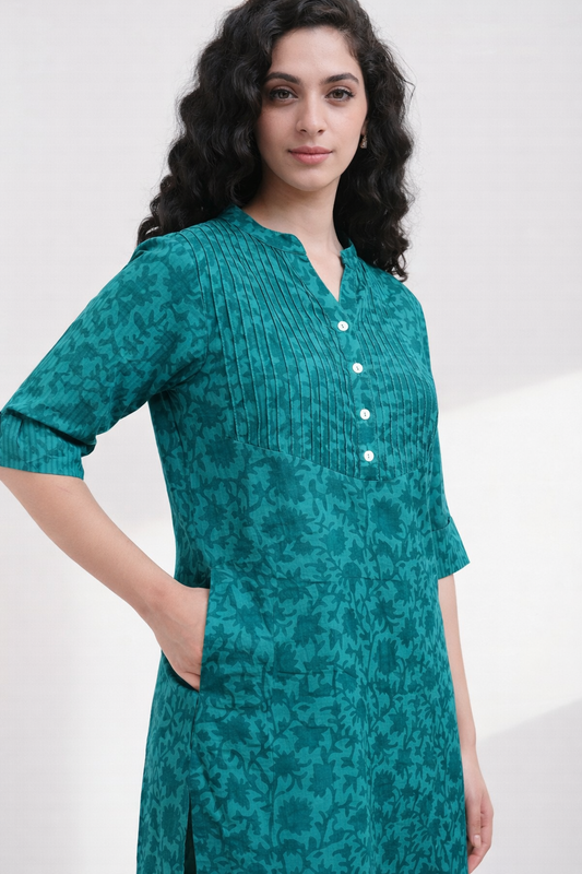 Sukoon Relaxed Chanderi Kurta Set - Green