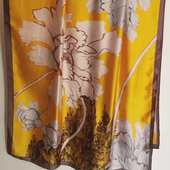 Kesar Bloom Satin Silk Scarf